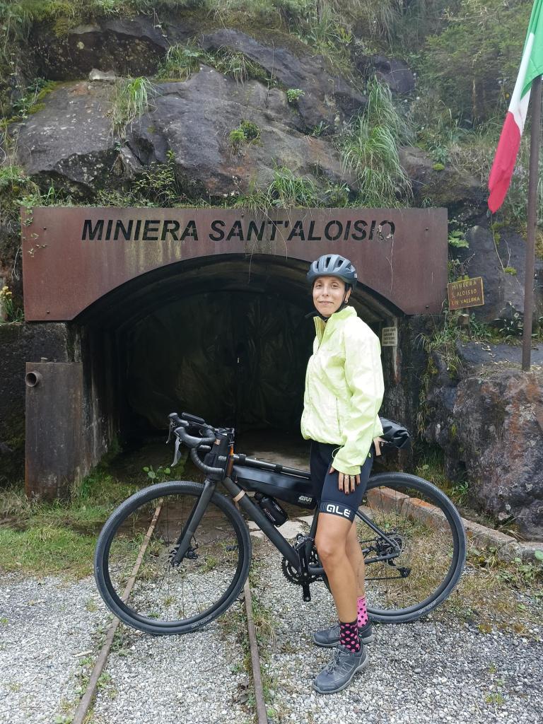 Arriviamo dopo poco alla tappa presso le Miniere di S. Aloisio dove una guida aspetta solo noi per farci scoprire questo pezzo di storia. Le miniere sono un luogo tanto affascinante quanto angosciante. Stretti cunicoli bui, freddi e umidi dove le aspettative di vita di chi ci ha lavorato si sono ridotte drasticamente lasciando una scia di malinconia nei racconti della guida. Ci entriamo in bici, nessuno l’aveva mai fatto.