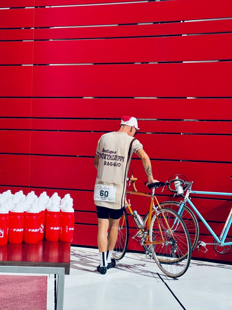 Ancora una volta il ciclismo si palesa con una cura estrema per i dettagli, mai da sottovalutare, dai completini in lana nei colori pastello o accesi e le linee eleganti, agli accessori in materiali pregiati. All’epoca il bikepacking non era così evoluto e quindi ecco che si fa di necessità virtù, e le camere d’aria diventano orpelli delle maglie, quasi come fossero bretelle. Faccio un viaggio nel tempo e la mia testa si dimentica di essere nel 2025.